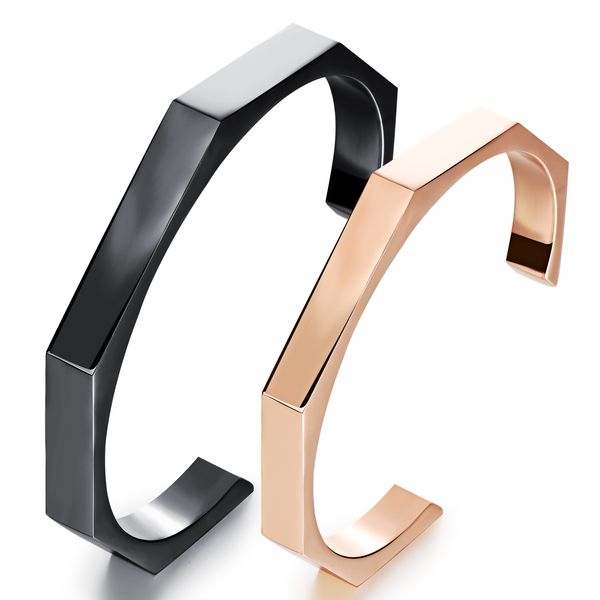 couple jewely women men new fashion 316l stainless steel lovers' open cuff bangle bracelet black / rose gold