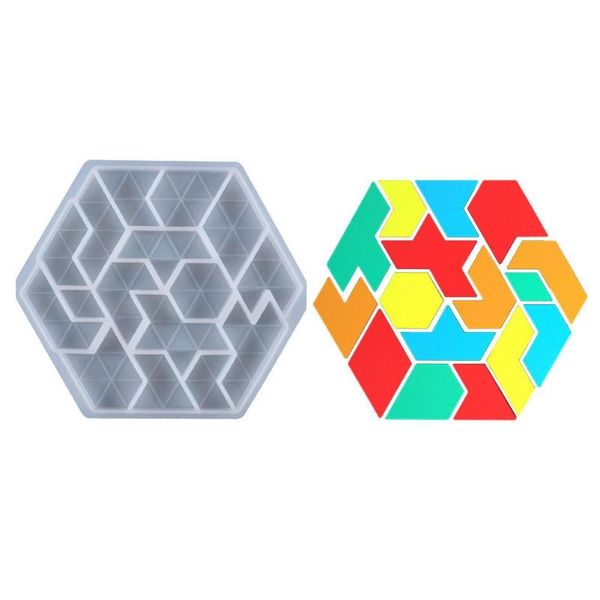 craft tools tangram puzzle mould diy crystal epoxy resin hexagon mold child intellectual development toy deskornament