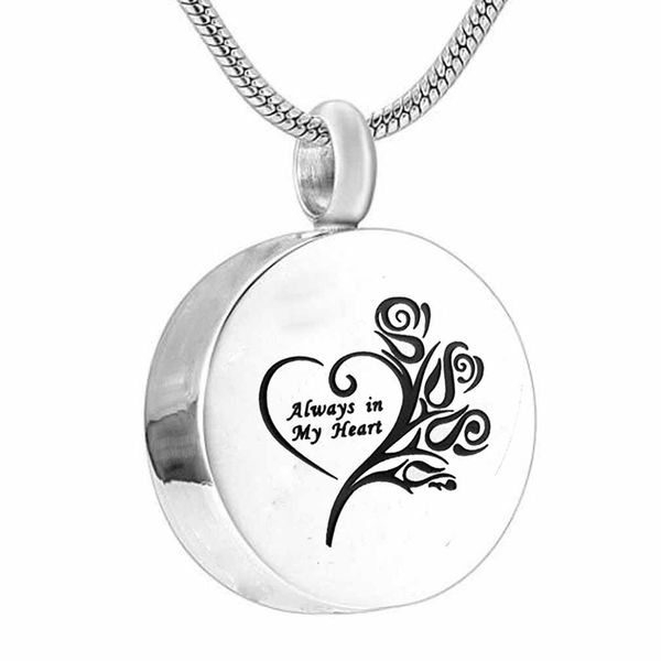 cremation jewelry round always in my haert ashes pendant memorial urn necklace, Silver