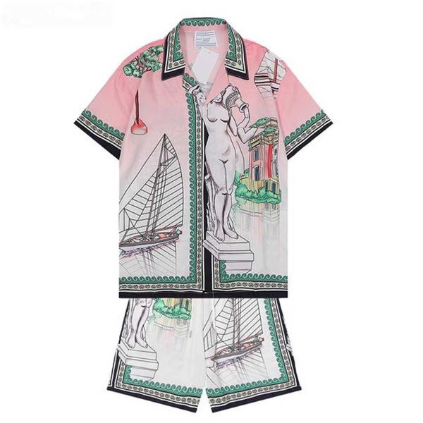 crime summer fashion mens tracksuits hawaii beach pants set designer shirts letter leisure shirt man slim fit the board of directors short s, Gray