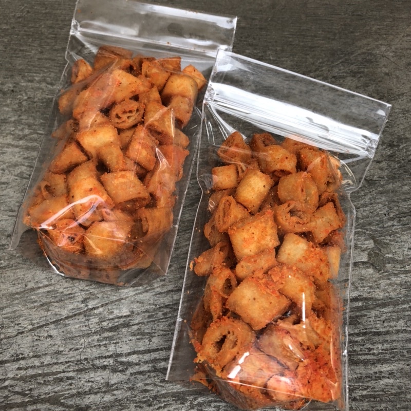 crispy roll cemilan pedas manis enak renyah dan gurih , bumbu nya racikan sendiri , home made , dan bikin nagih , hadir dengan kemasan 100 gram padat isi