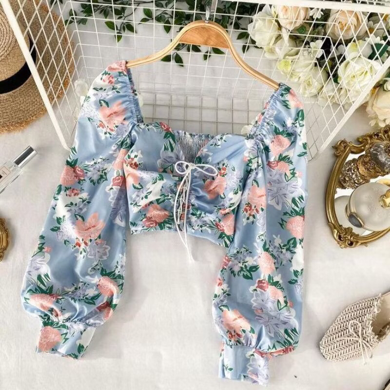 2025 New Retro Summer Beach Vacation Dress Women Sexy Strapless Lantern Sleeve Sweet Floral Jumpsuit Short Chiffon Print Dresses