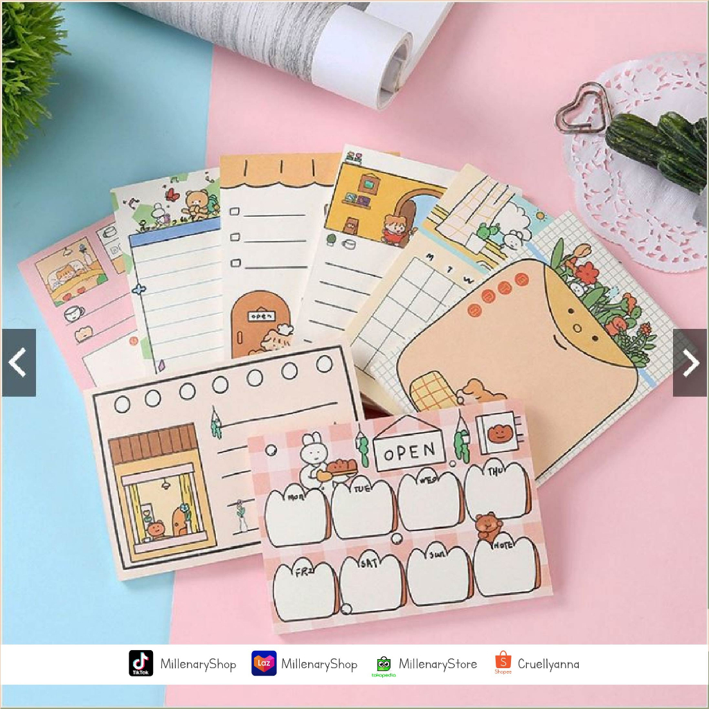 Koleksi Rabbits Bakery Day Planning Memopad berisi kumpulan kertas memo penuh warna yang bisa kamu gunakan untuk merencanakan hari-harimu dengan baik. Bentuknya yang kecil pas untuk disimpan di saku tanpa mengganggu aktivitas sehari-harimu mengelola toko roti yang sukses.
