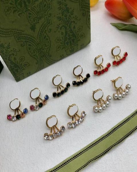crystal pearl stone stud 925 silver luxury charm stud geometric famous letters women girls rhinestone pearls earring wedding party5862468, Golden;silver