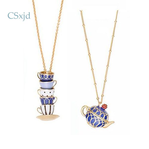 csxjd luxury fashion copper enamel glaze tea time teapot teacup necklace jewelry cx200721, Silver