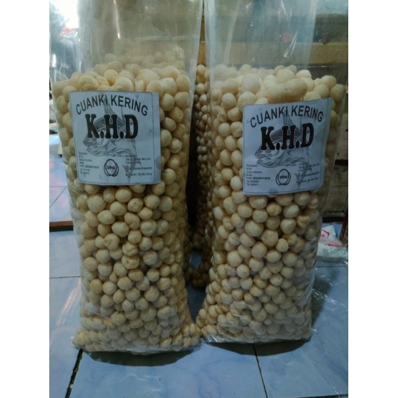 Terbuat dari tepung,tapioka,ikan laut,bawang putih,merica,garam,penyedap rasa.