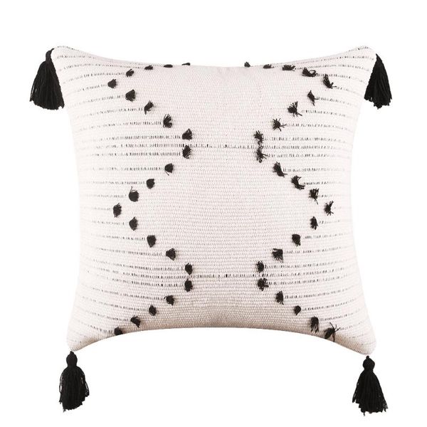 cushion/decorative pillow moroccan simple home decorative cotton knitting tufted case black and white tassel geometric jacquard car cushion