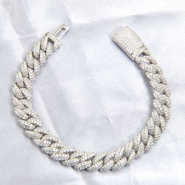 custom 9mm iced out cuban bracelet jewelry white gold plated hip hop cuban link chain moissanite bracelet, Silver