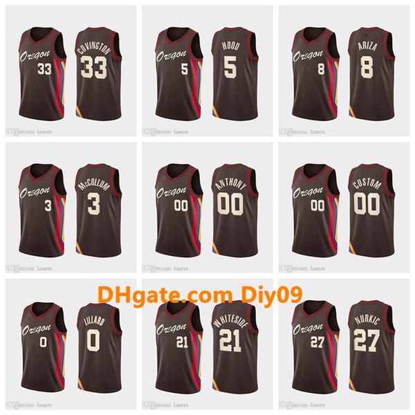 custom damian lillard mccollum anthony portland trail blazers jersey nurkic hood ariza new little city basketball jersey, Black;red