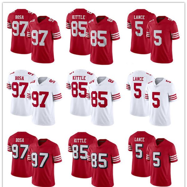 custom football jerseys 19 deebo samuel 16 joe montana 5 trey lance 85 george kittle 97 nick bosa 10 jimmy garoppolo 80 jerry rice 54 fred w, Black;red