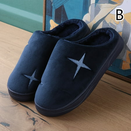 VeliToy Fluffy Stuffed Slippers Non-slip Indoor House Shoes Comfy Plush Slip For Home Bedroom(Navy Blue B 42-43)