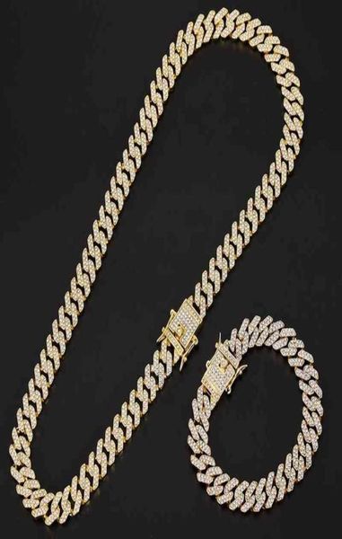 custom gold plated miami hip hop jewelry iced out rhintone diamond zircon cuban link chain necklace87418521598466, Silver