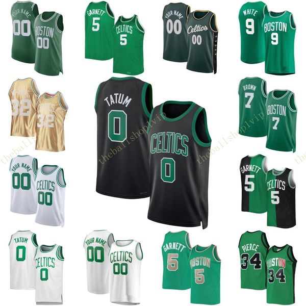 custom men's basketball jersey celti green edition jayso tatum jaylen brown al horford malcolm brogdon marcus smart robert williams bla, Black;red