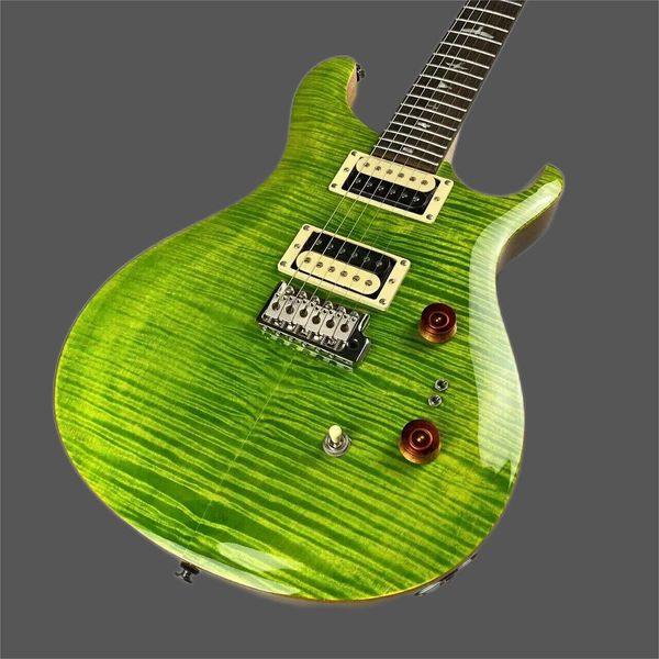 custom prs electric guitar with green moire pattern, new, factory, 6-string