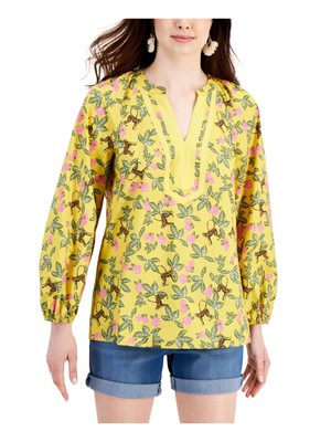 CHARTER CLUB Женская желтая хлопковая рубашка с разрезом на рукавах, рабочая туника, топ, Желтый