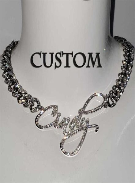 custom stainless steel word and name necklace 1 2 cm cuban rhinestone chain miami men039s women039s links hip hop jewelry2144186476, Silver