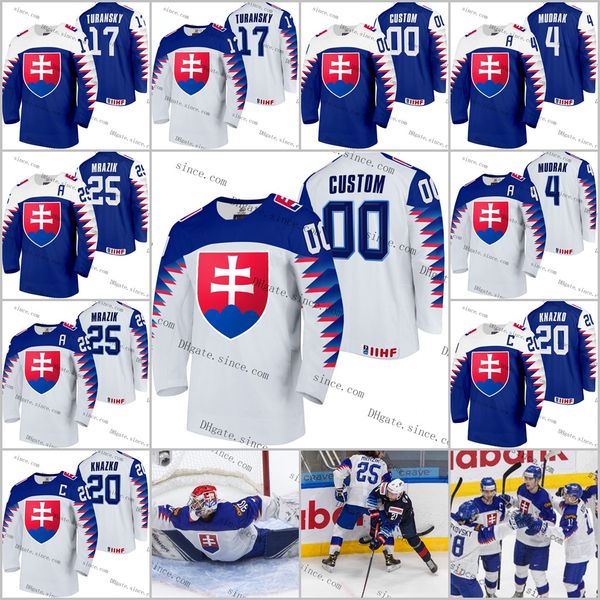 customize" slovakia blue 2021 iihf world championship home away jerseys knazko david mudrak michal mrazik petrovicky any name num, Black;red