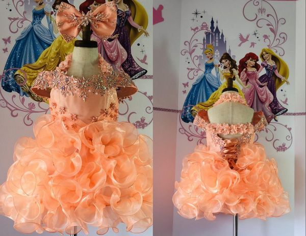 cute coral toddler girls pageant dresses little girls halter cold shoulder rhinestones ruffles newprom kids formal wear flower girls dress, White;red