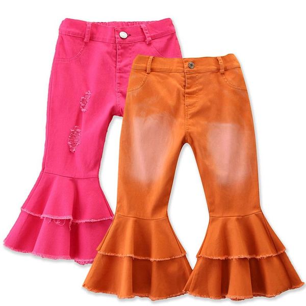 cute flare denim trousers baby girls long autumn spring kids solid holes pants children cowboy jeans, Blue