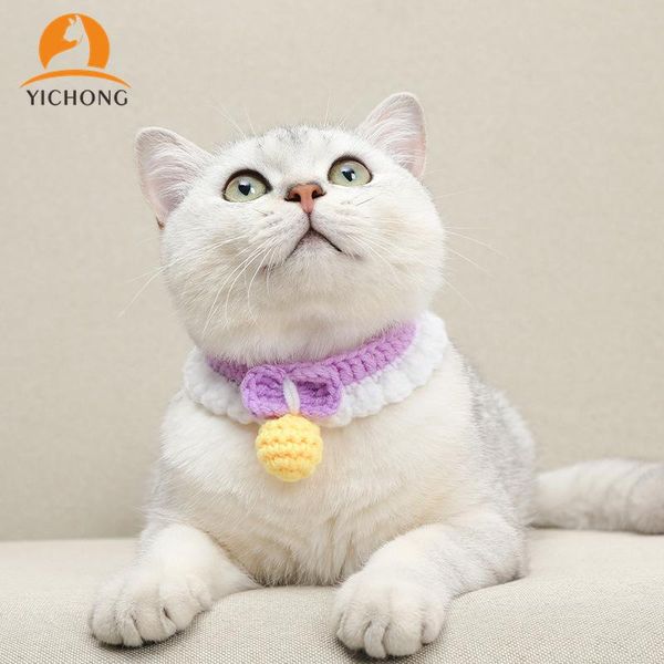 cute handmade knitting cat collar small dogs bowknot bowtie accessories wool flower pet products yh396 costumes