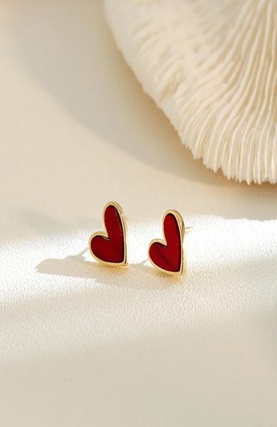 cute heart shape love earrings for girls red fairy decoration jewelry accessories women students gift9397047, Golden;silver