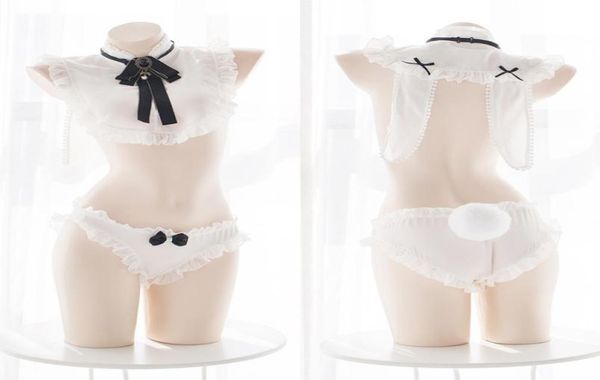 cute kawaii anime seducive lingerie chiffon underwear gentleman bunny roleplaying tail panties set ly1912229636975, Red;black
