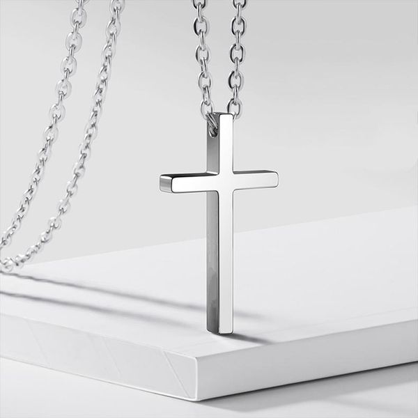 cutomize titanium stainleel steel simple classic cross necklace trendy pendant jesus girl short long chain jewelry for women necklaces, Silver