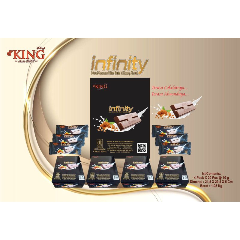 d'King Infinity merupakan cokelat compound hitam manis isi kacang almond.