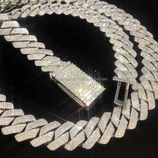 d color iced moissanite vvs 20mm hip-hop jewelry necklace miami 925 sterling silver moissanite cuban chain necklace customized