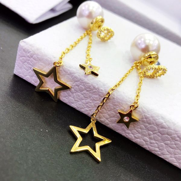 d family di family 2019cd letter rhinestone pearl star tassel earrings female temperament female earrings