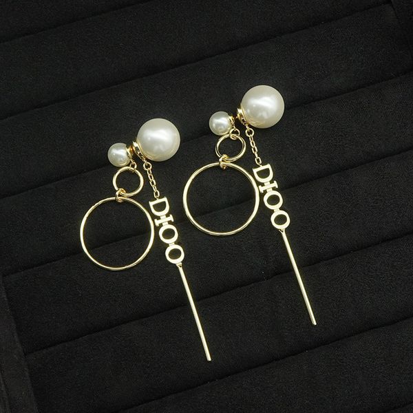 d signature / earrings net red same pearl letter tassel circle double ring earrings jewelry, Black