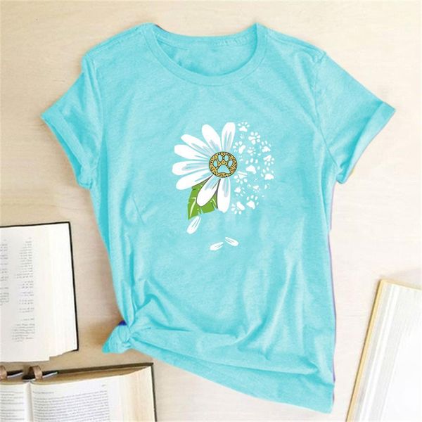 daisy bear paw print t-shirts women summer graphic tee aesthetic shirts for women casual short sleeve ladies camiseta mujer, White