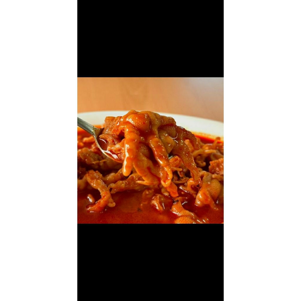 ceker tanpa tulang yang dimasak dengan bumbu rempah dan cabai