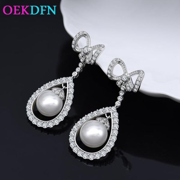 dangle & chandelier oekdfn luxury 100% 925 sterling silver drop earrings for women bowknot pearl gemstone party wedding fine jewelry
