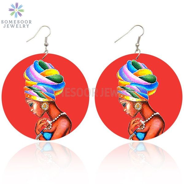 dangle & chandelier somesoor afro ethnic headwrap woman in red printing wooden drop earrings black tribal arts pendant jewelry for women gif, Silver