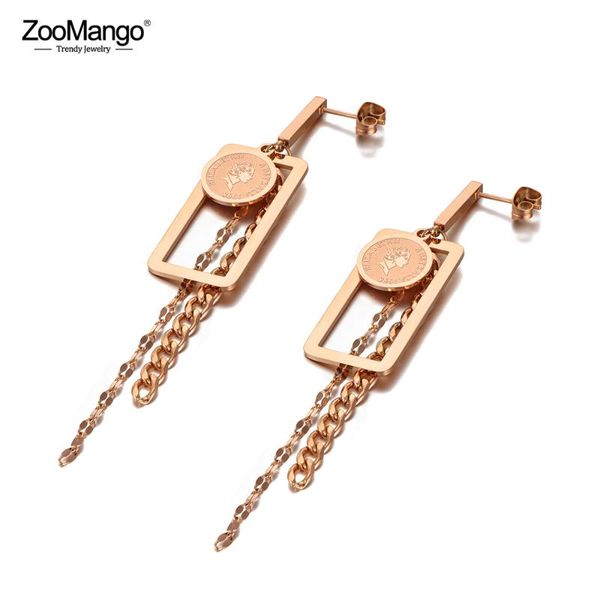 dangle & chandelier zoomango bohemia hollow geometric tassel earrings stainless steel trendy queen avatar jewelry for women girls ze20104, Silver