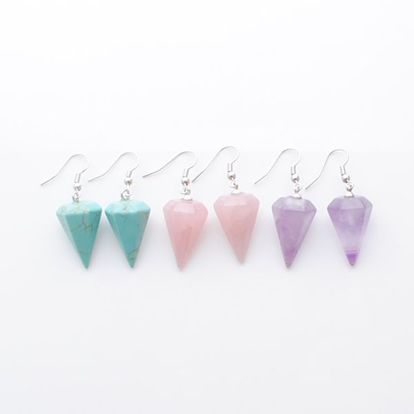 dangle earrings for women hanging fashion jewelry bohemian pyramid natural stone amethysts turquoises crystal romantic br332, Silver