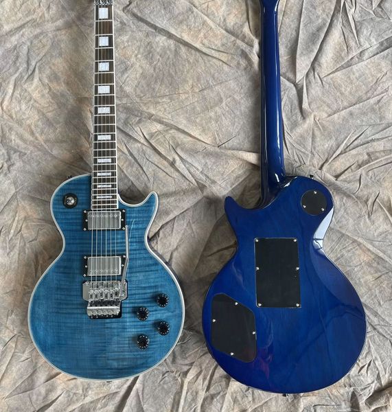 dark blue flame maple electric guitar carved axcess neck joint cutout