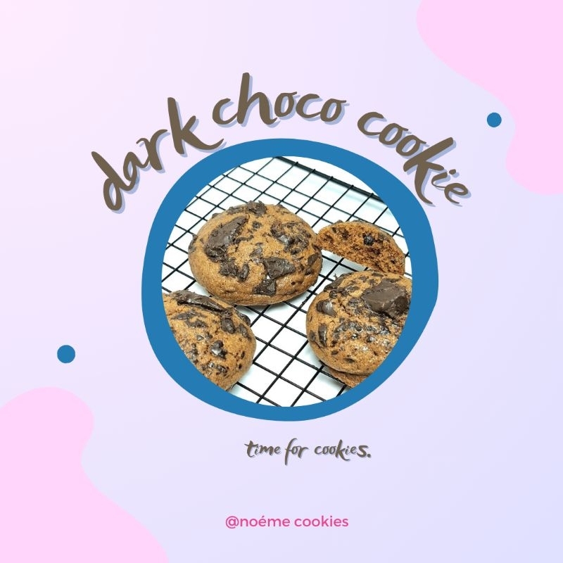 base cookies coklat + campuran choco chip + toping potongan dark choco