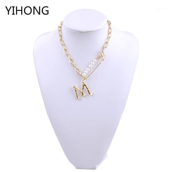 decor m/c drop letter pendant long chain necklace pin pendant with faux pearl choker for fashion women jewelry1, Silver
