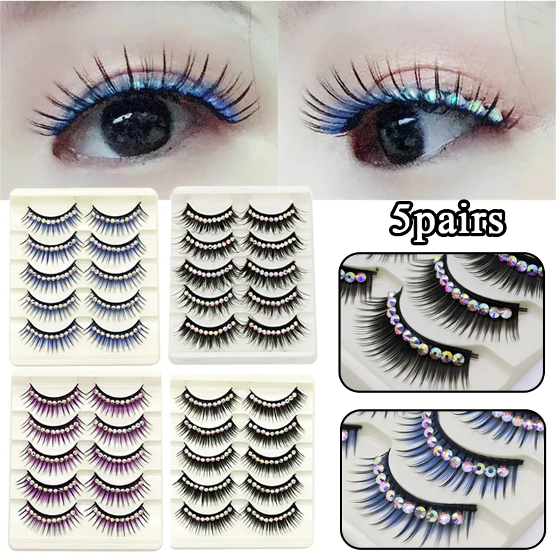 5 Pairs Colorful Diamond False Eyelashes Latin Party Cosplay Club Performance Thick Fake Eye Lashes Shimmery Comfortable Shinny