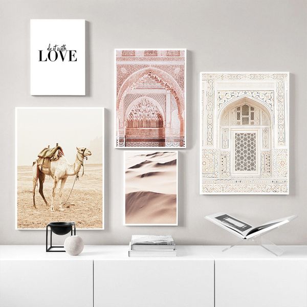 desert camel canvas art painting islamic poster moroccan arch wall prints quote love wall picture for living room decoration