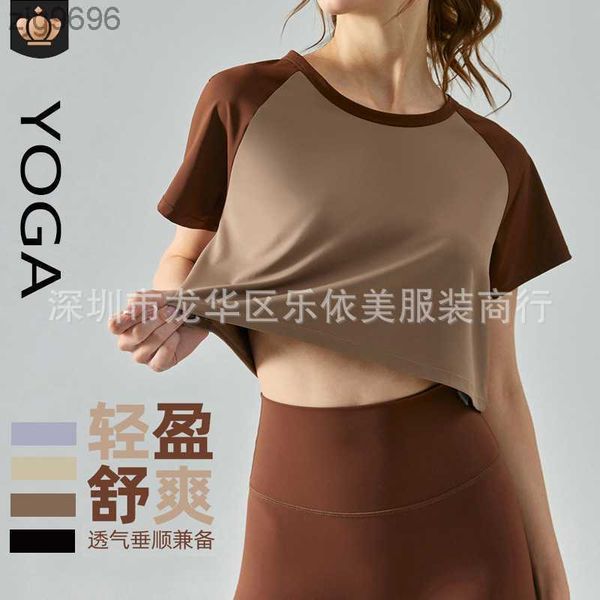 desginer alos yoga t shirt alosummer new raglan contrast short sport short sleeve open navel breathable quick dried cover up, White