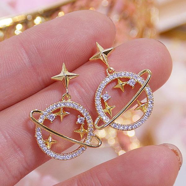 design exquisite advanced planet earrings for women r luxury jewelry inlaid quality zircon s925 needle stud, Golden;silver