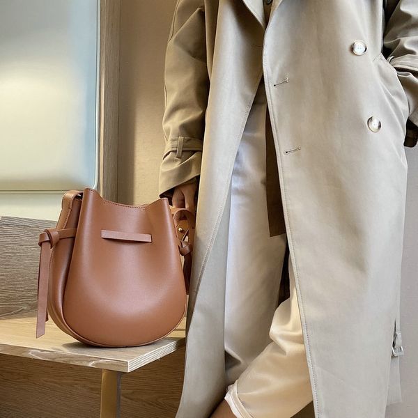 design hand niche design women 2020 new leather simple shoulder bag fashion large capacity commuter bucket bag 6022, Red;black
