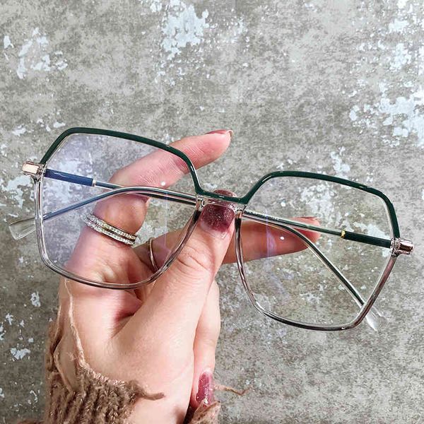 design sunglasses new anti blu ray women's korean version large frame flat lens net red ins plain face polygon personality 30048, White;black