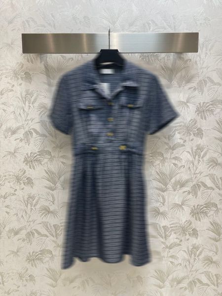 designer 2023 summer women's turn down neck short sleeve pocket letter dresses fashion dress womens casual single breasted elegant dres, Black;gray