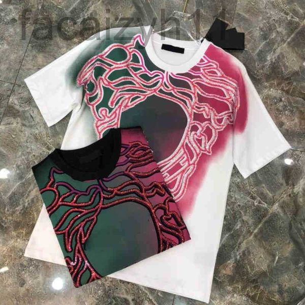 designer cotton t shirt tide brand designer vers short sleeve t-shirt claic medusa embroidery diamond round neck loose hip hop osww, White;black