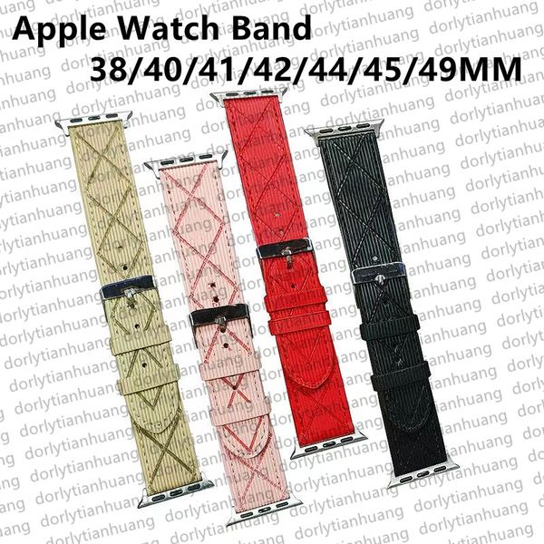 designer embossing watch band straps for apple watch bands 41mm 42mm 38mm 44mm 45mm iwatch 3 4 5 6 7 9 strap fashion leather letter strap br, Black;brown