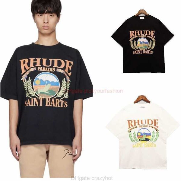 designer fashion clothing tees tshirt rhude sunset beach comfortable pattern printing for men women couples summer short 2p96, White;black